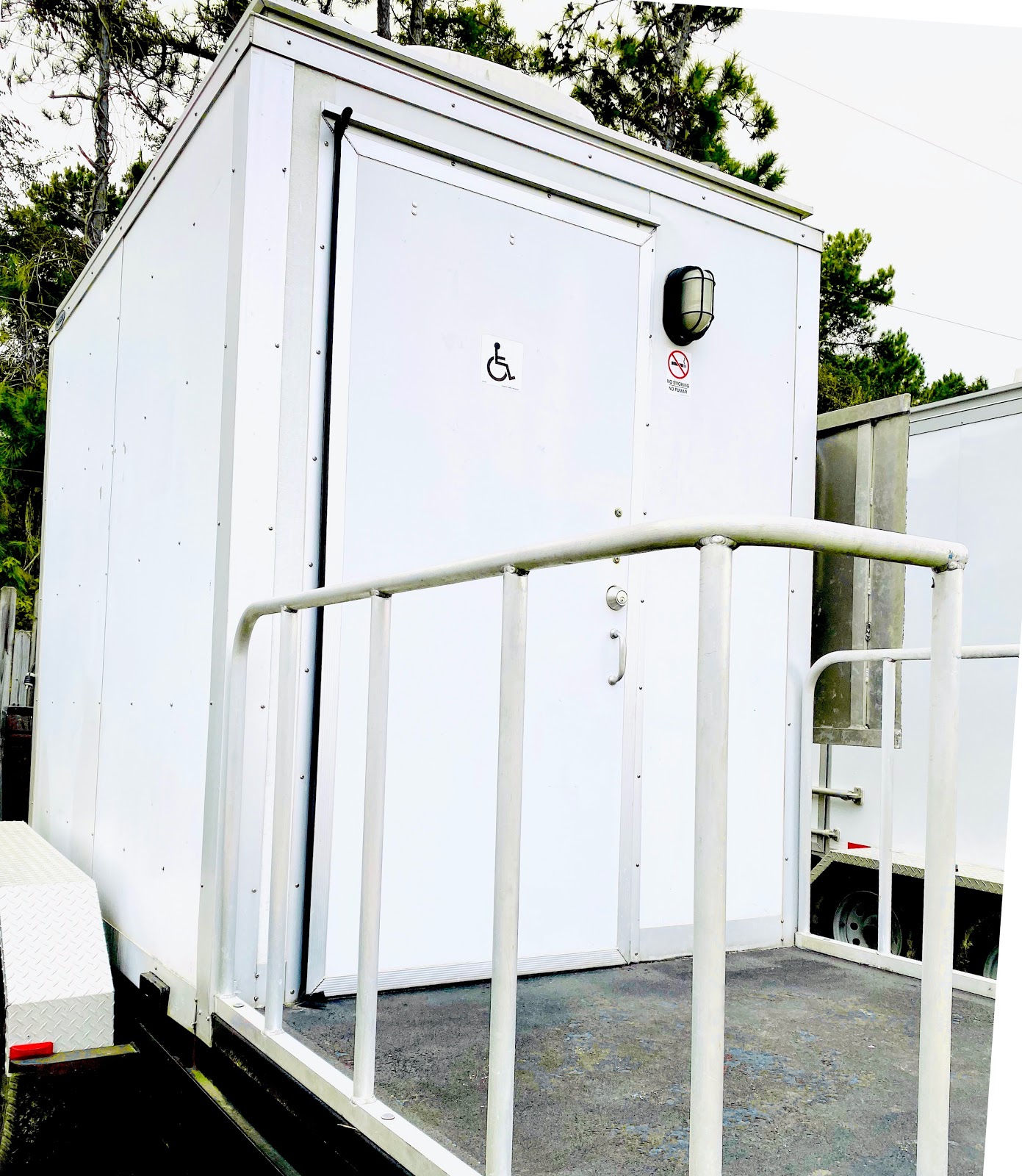 Our quality sanitation stations are modern alternatives to a traditional porta potty. Ensure every guest has easy access to your event restroom when you work with First Class Rentals.